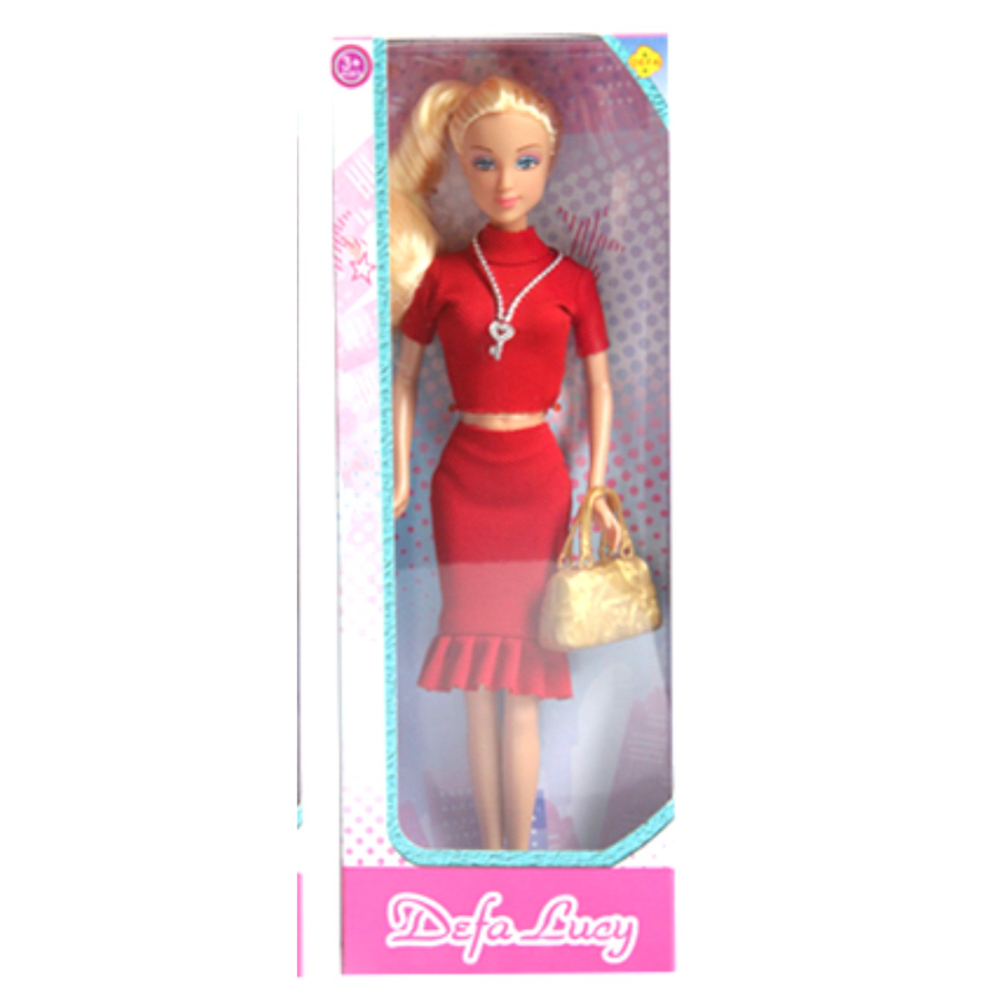 Lalka defa w czerwonej sukience