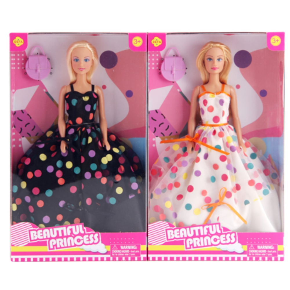 / Lalka defa w sukni w groszki